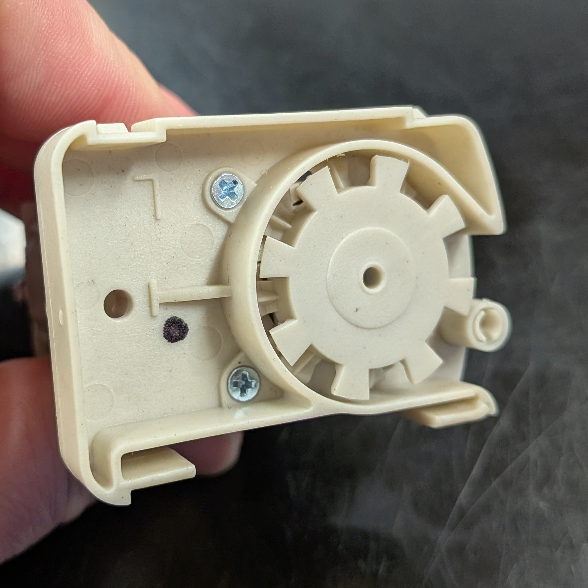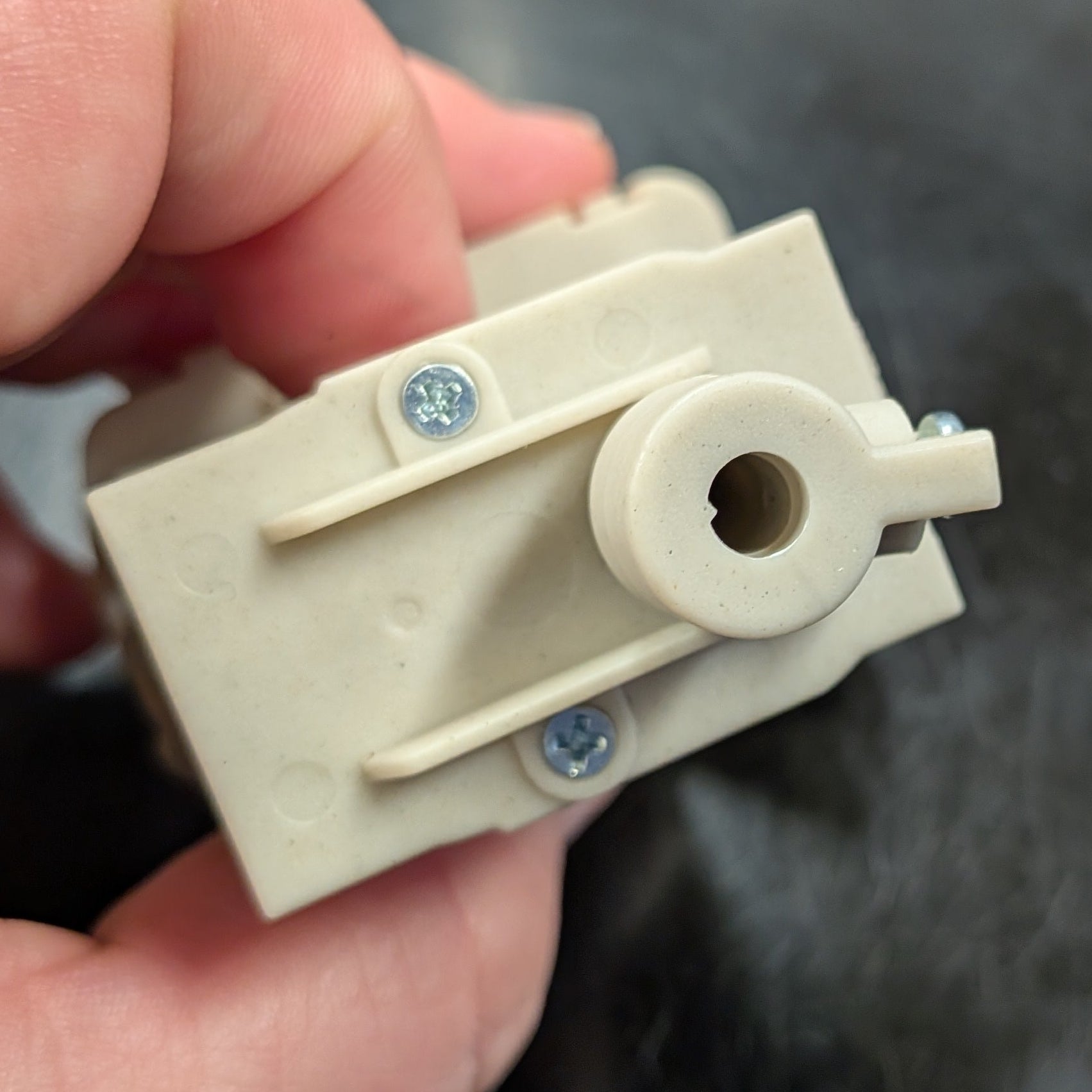 This clutch is for the left side of top-down-bottom-up cellular, honeycomb, and pleated shades that operate with a continuous cord loop. It is seen on brands including Comfortex, Alta, and ILM.