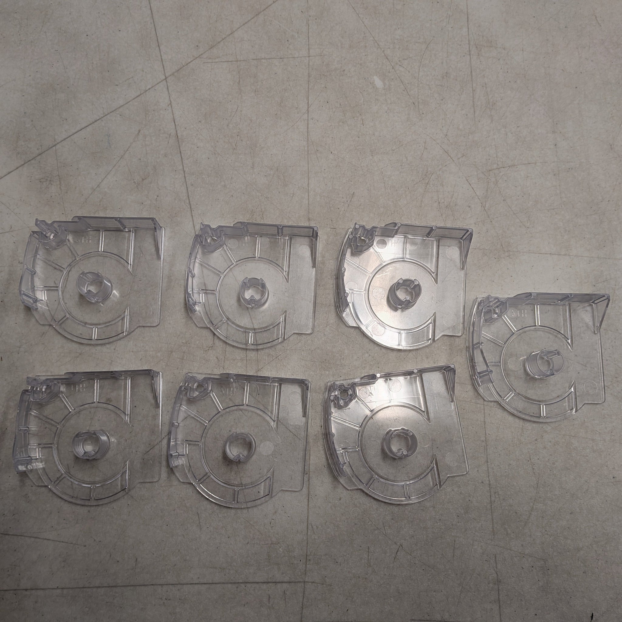 This lot contains seven clear plastic LEFT end caps for Silhouette sheer shades.